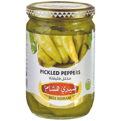Sedi Hisham® inlagd Hourani paprika är en typ av inlagd paprika. Paprikorna inläggs i en lösning bestående av vatten, ättika, salt och kryddor som vitlök eller chili, beroende på smak. Inlagd paprika är ett läckert tillbehör i många traditionella arabiska rätter och används som en sidorätt eller i smörgåsar och sallader.